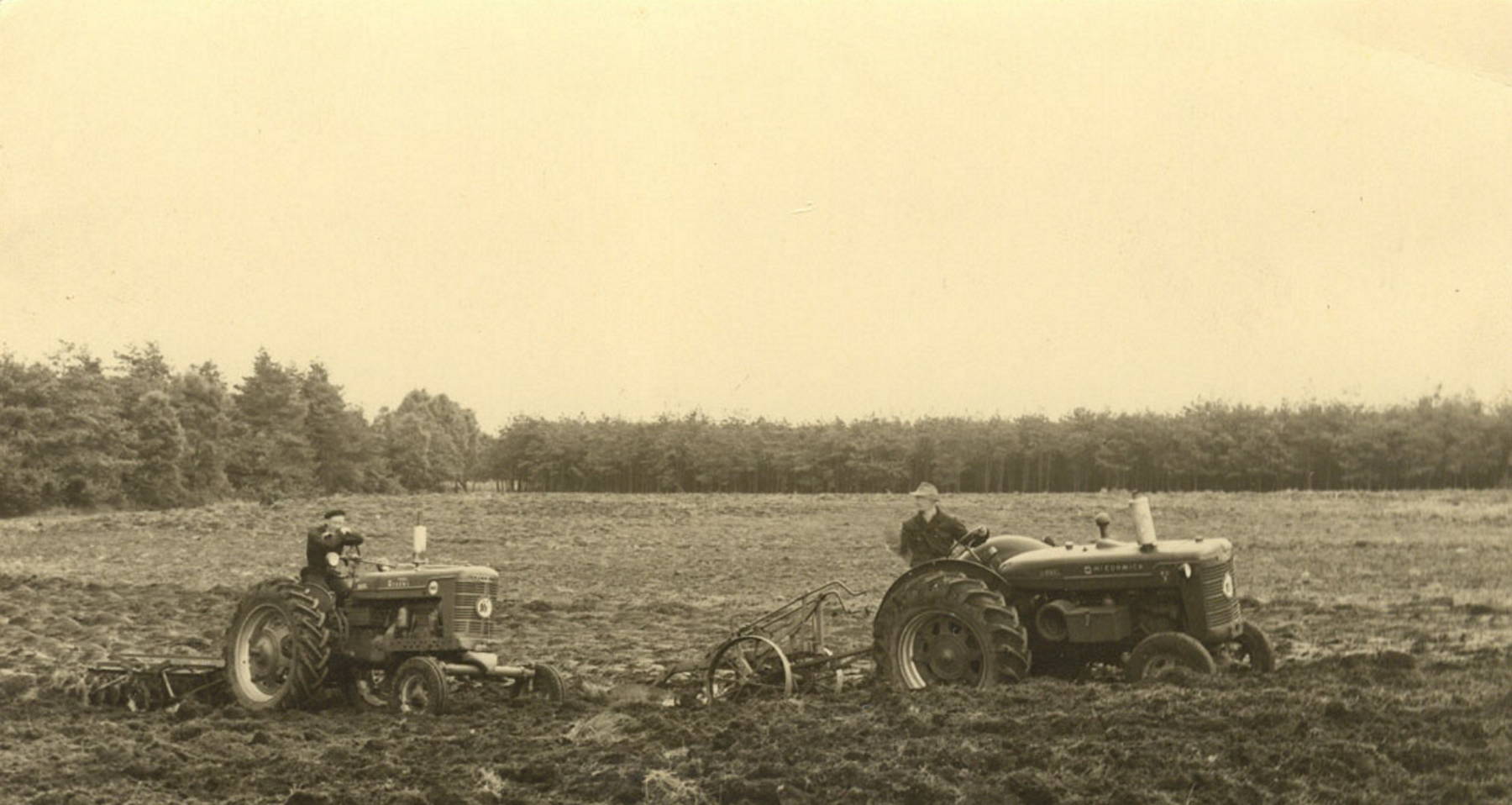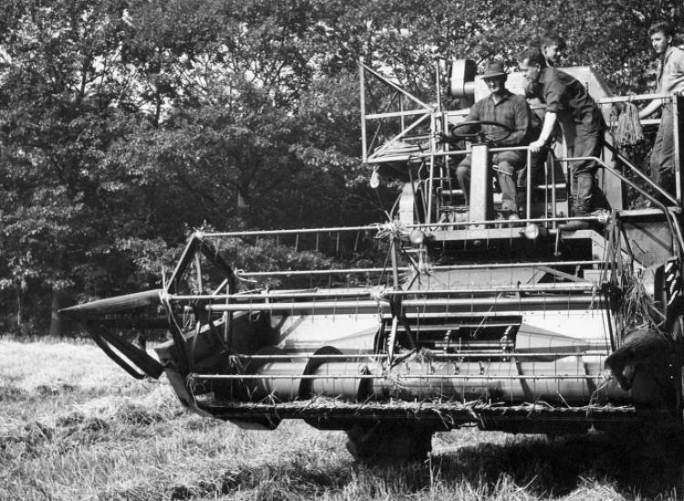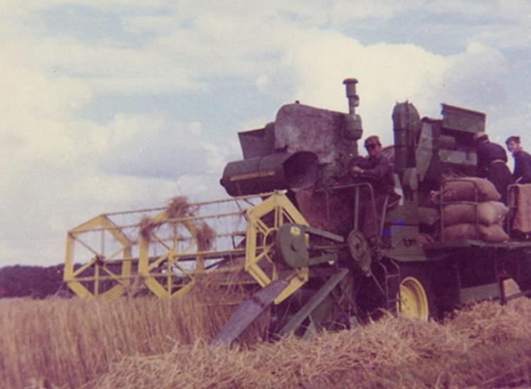 De eerste combine schaften ze begin jaren vijftig aan, een Massey Harris. "Toen we hem hadden aangeschaft vroegen ze wat we ermee moesten. Een loonbedrijf uit de omgeving had juist een dorscombi gekocht maar daarmee kostte het maaien en dorsen veel meer tijd." De combine had, zo bleek, de toekomst. Het bedrijf groeide gestaag. Eind jaren '50 hadden de broers al 5 man in dienst. Zij poseerden in de herfst van 1958 met de familie Vaarkamp en al het materieel voor de foto.