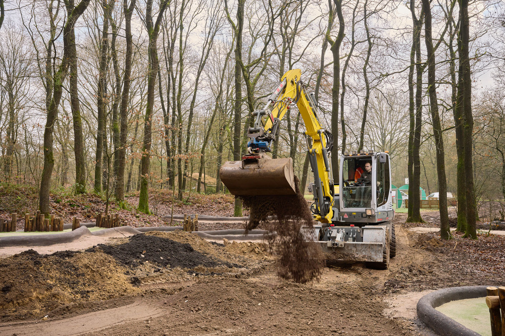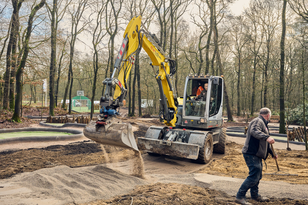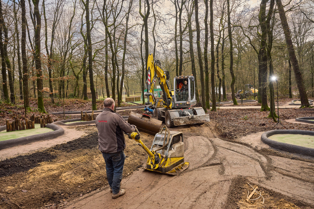 De randen van de banen zijn van beton in de kleur antraciet die ter plaatse is gedraaid en verwerkt.