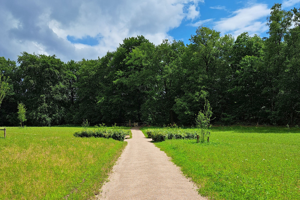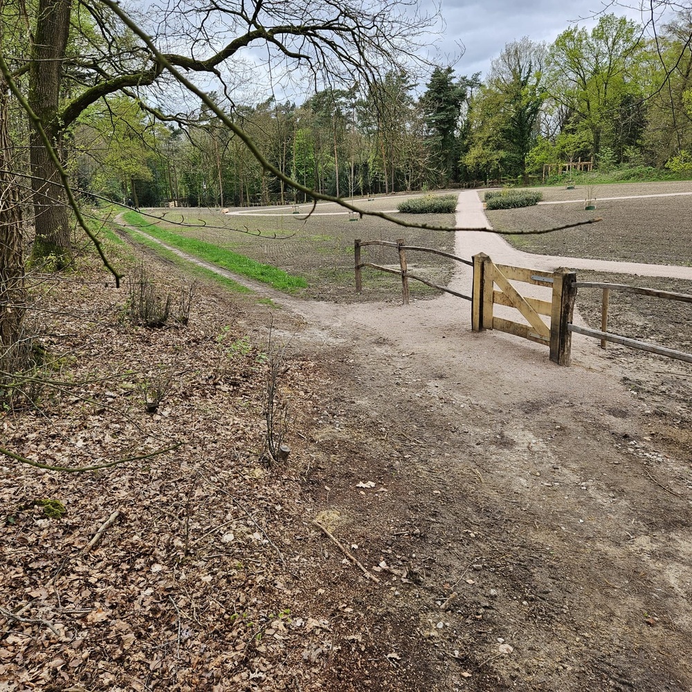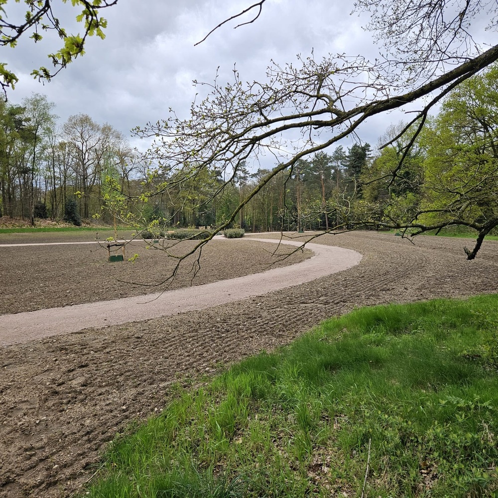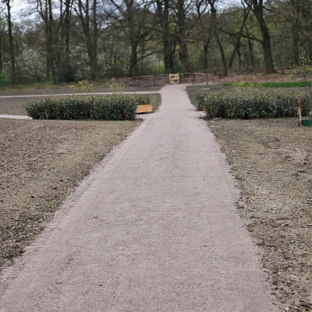 Om de natuurlijke uitstraling van het gebied te behouden is de aanwezige akker omgevormd tot bloemenweide. Het wandelpad dat door de weide loopt is uitgevoerd in de halfverharding Schots granietgruis en vormt het infinity-teken dat oneindigheid verbeeld.