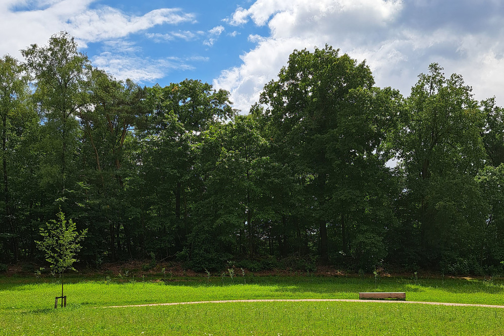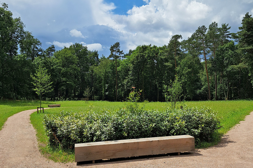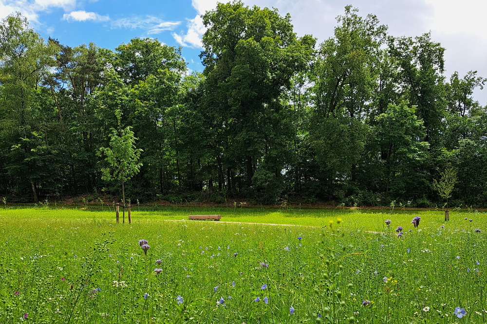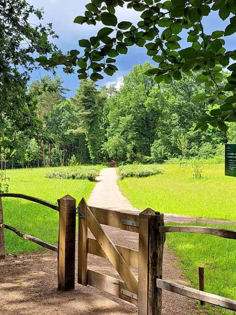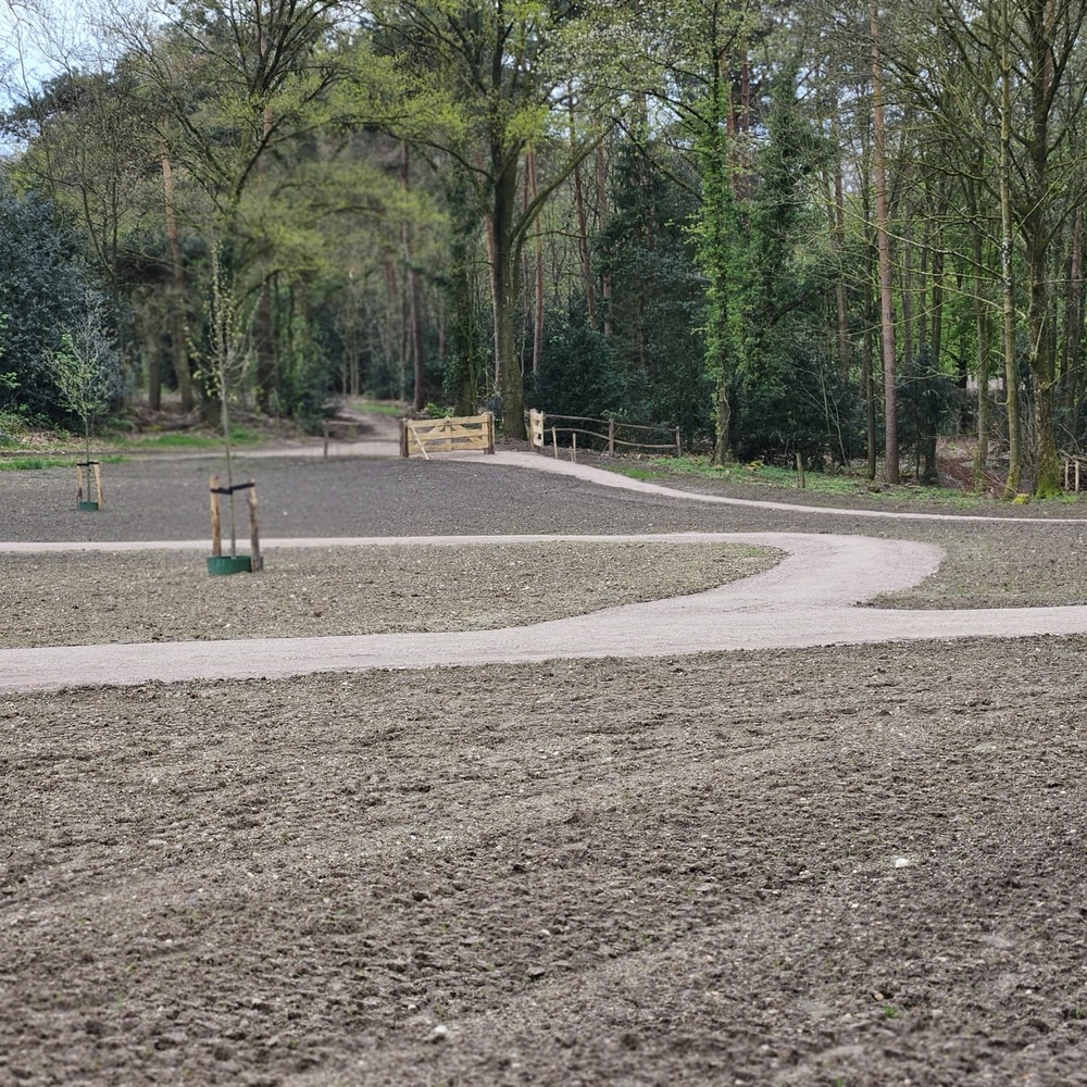 Om de natuurlijke uitstraling van het gebied te behouden is de aanwezige akker omgevormd tot bloemenweide. Het wandelpad dat door de weide loopt is uitgevoerd in de halfverharding Schots granietgruis en vormt het infinity-teken dat oneindigheid verbeeld.