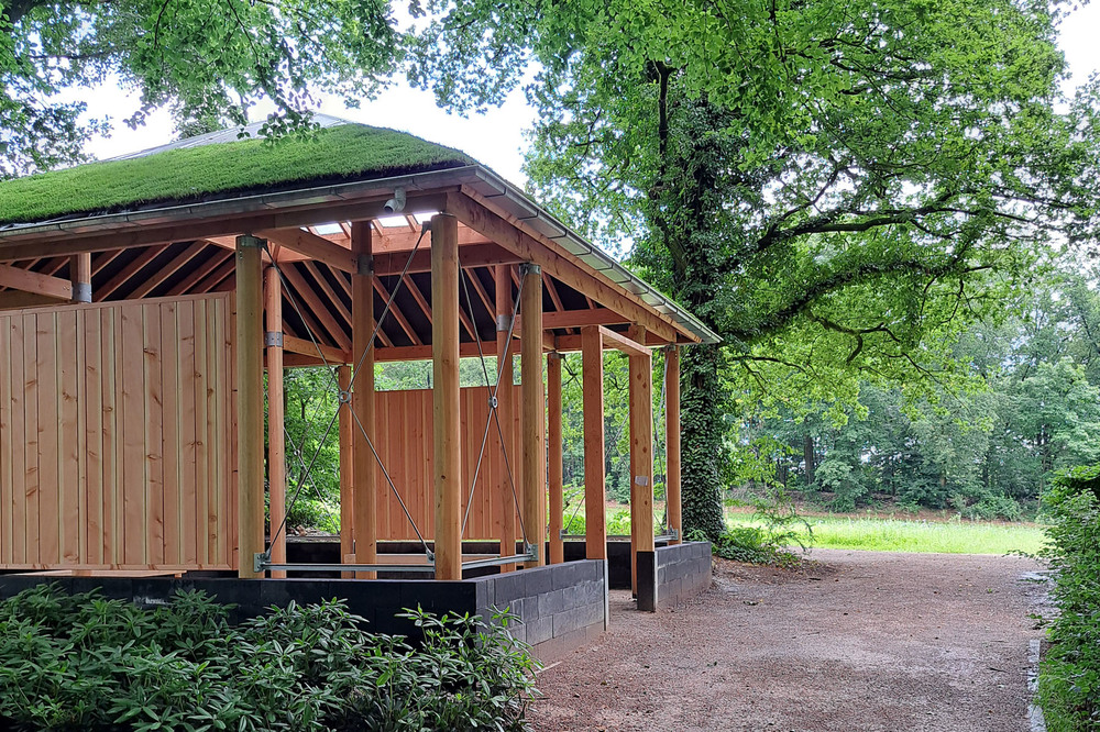 In de bosstrook, bedoeld om er asbussen te begraven, is een bospad aangelegd van houtsnippers. Bij de entree van de begraafplaats is een sfeervolle boskapel gebouwd van hout met een groendak. Ook de overige elementen als zitbanken en toegangspoorten zijn in landelijk hout uitgevoerd.