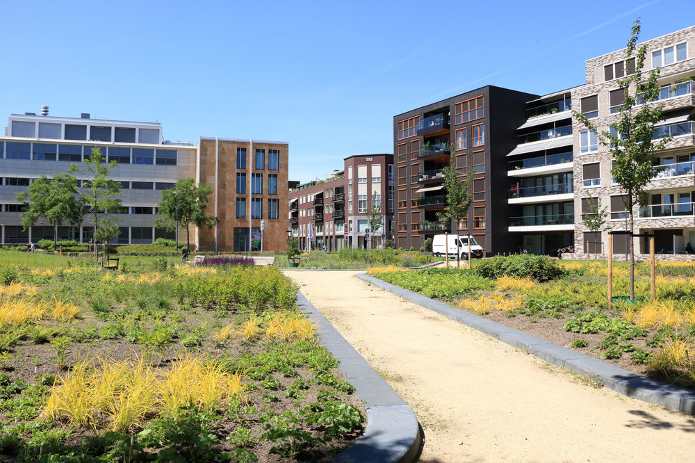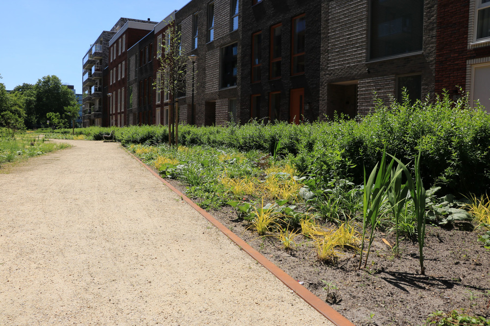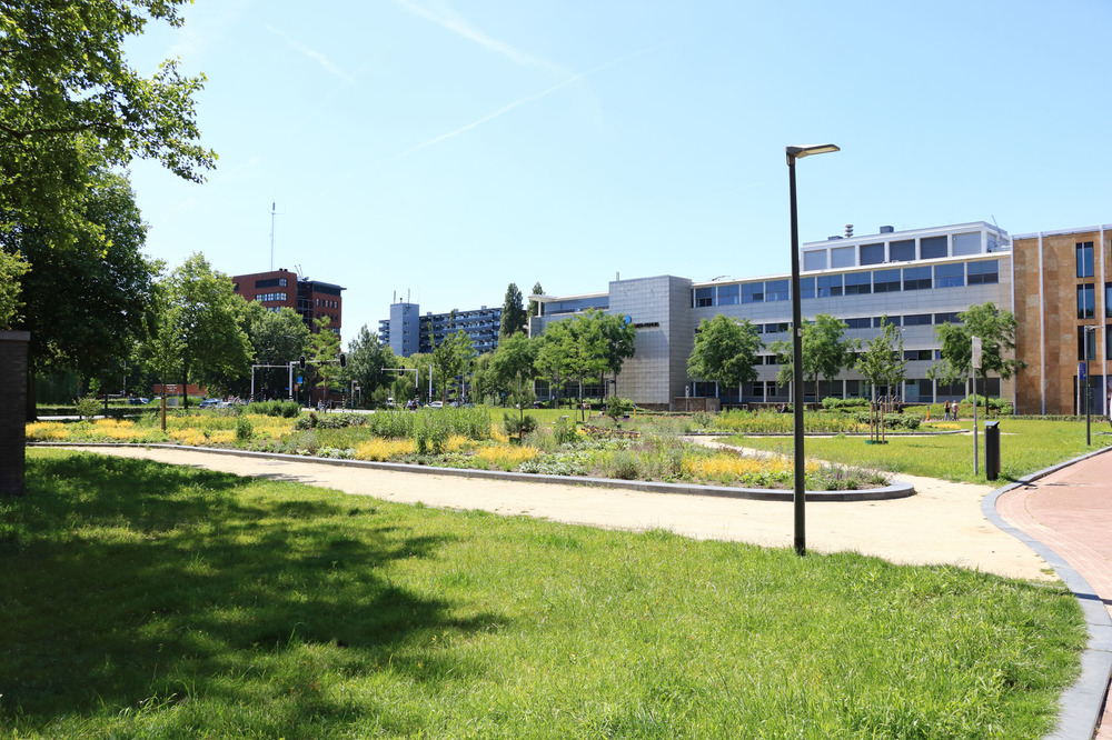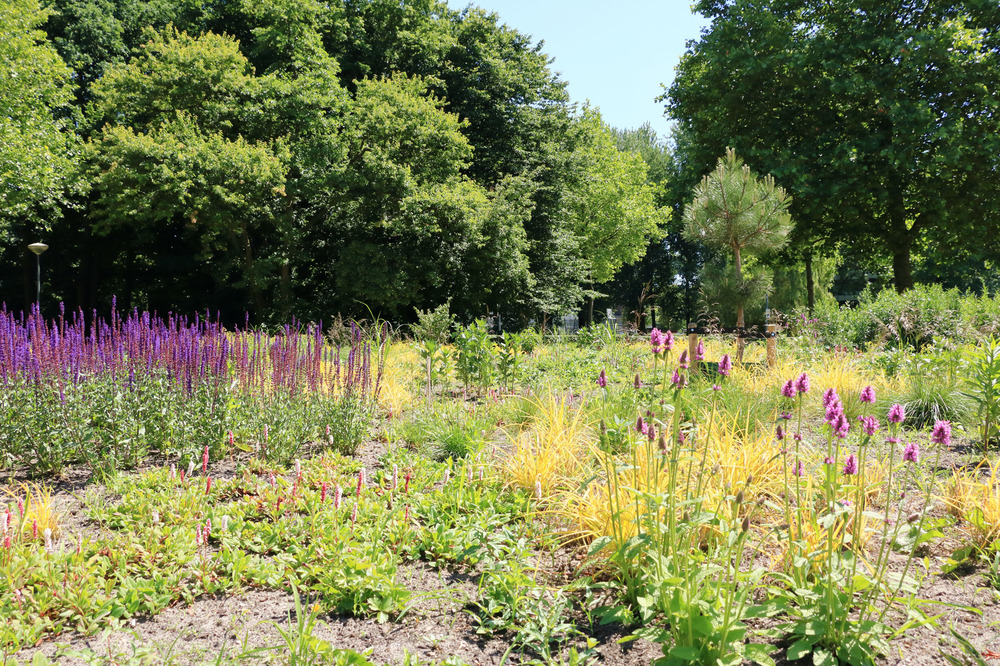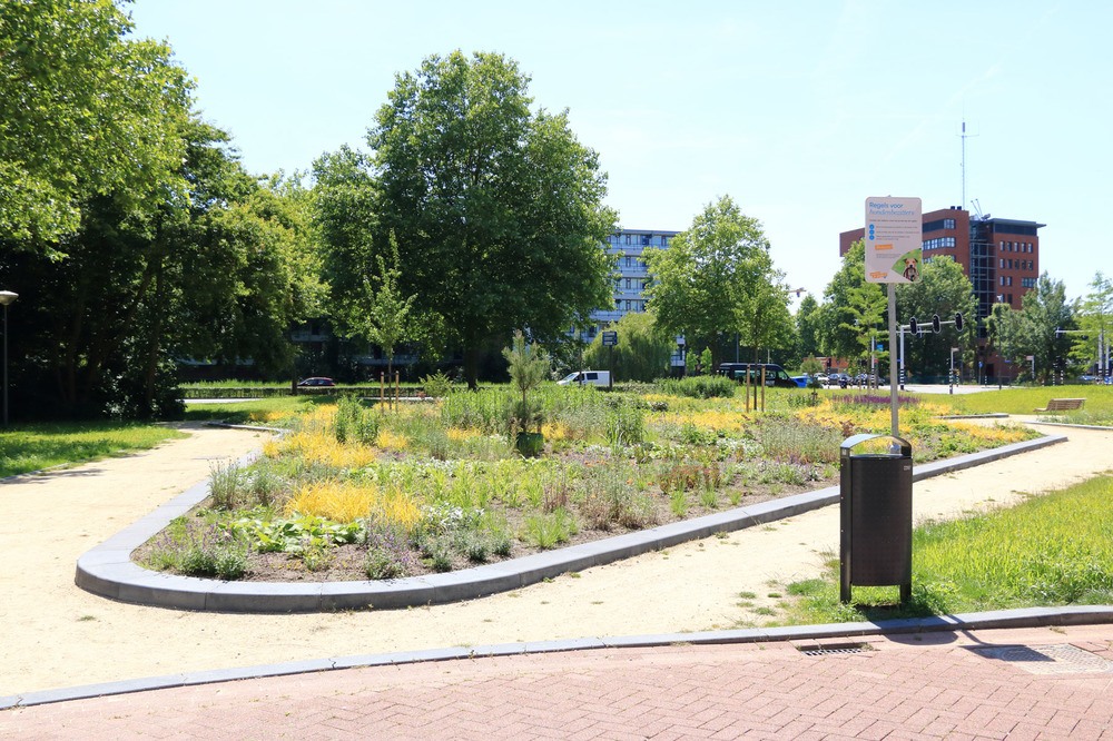 We plantten een grote diversiteit aan bloeiende planten. Ruim 12.000 stuks en 19 bomen. Gazonvlakken zaaiden we in met een bloemrijk mengsel.