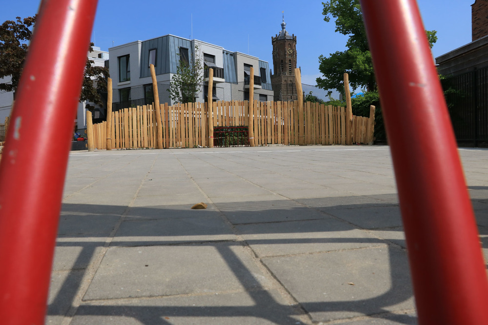 Het schoolplein was een schoolplein zoals zovele. Veel 30x30 tegels, hier en daar een boom met als laatste vernieuwing kunstgras.