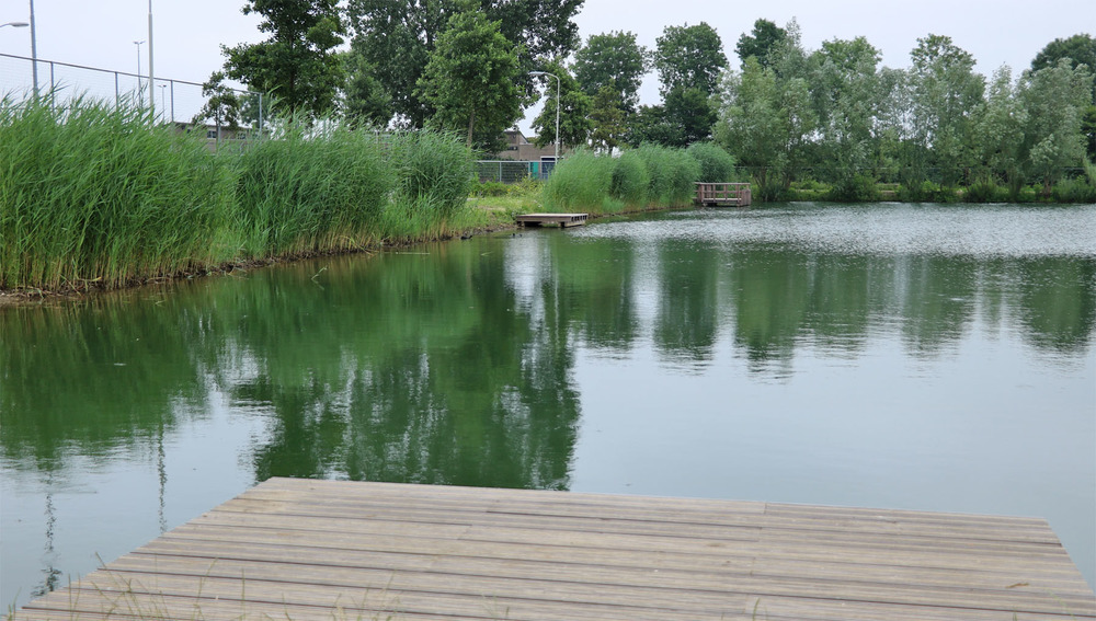 Tussen de sportvelden ligt een visvijver die is uitgebaggerd en onder profiel gebracht. Rond de vijver zijn vier steigers aangebracht waarvan een speciaal voor mindervaliden en kunnen de vissers met een zeker comfort hun sport beoefenen.
