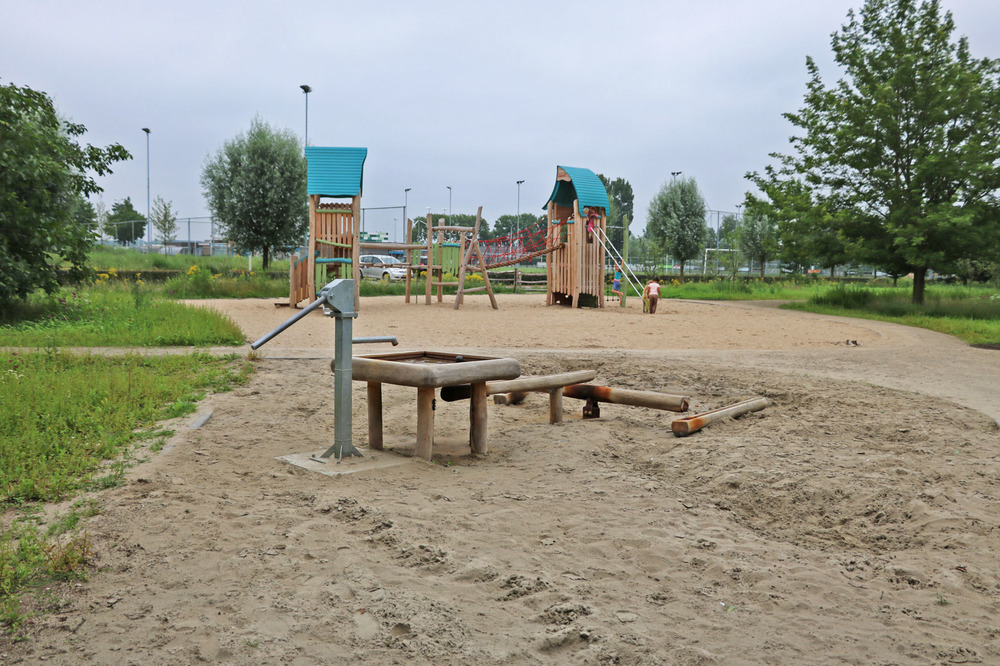 Gelijktijdig met ons werk plaatste een andere partij in deze tweede fase een waterspeeltuin, klimtoren, picknickbanken en spelaanleidingen.