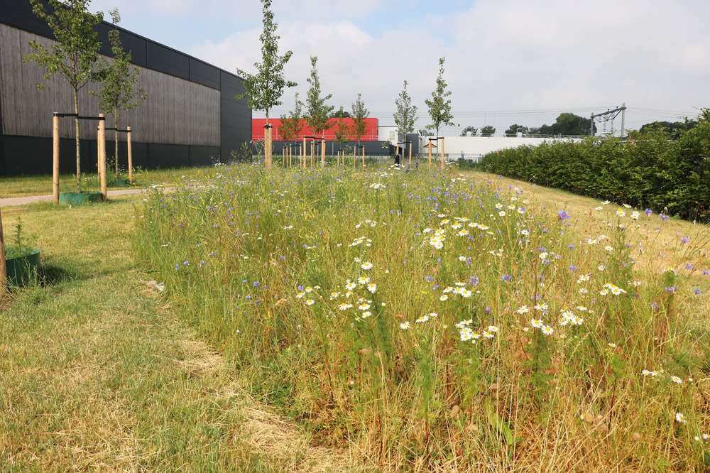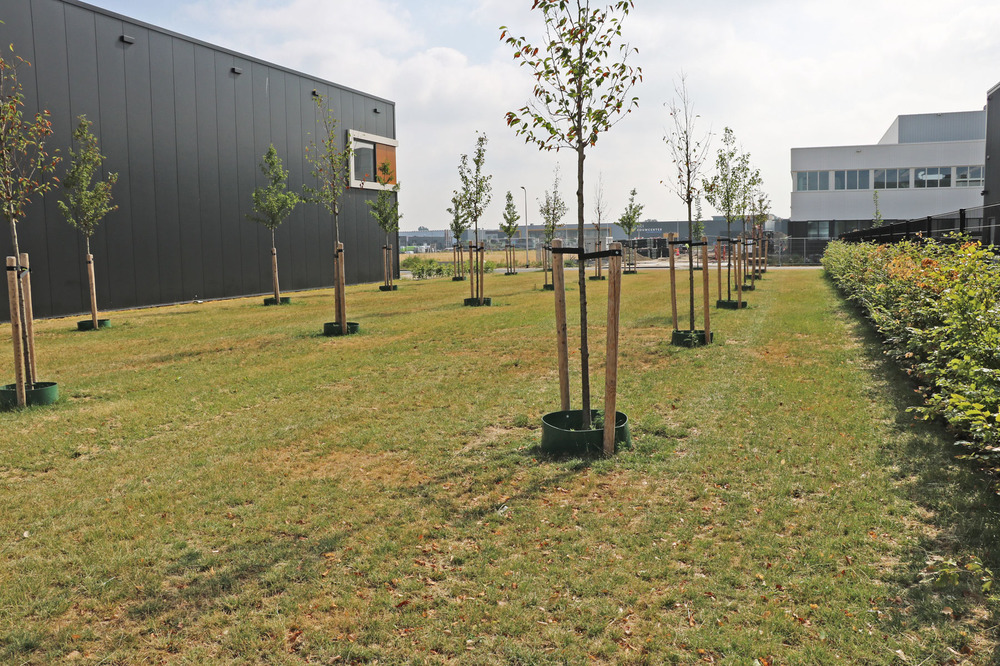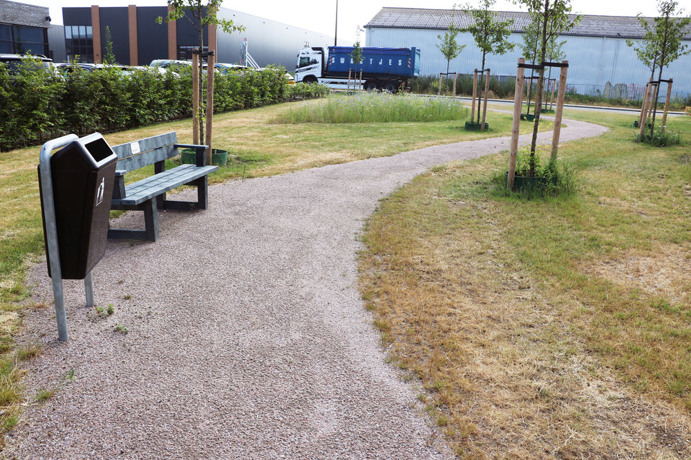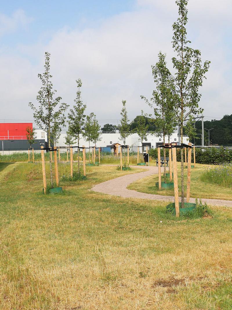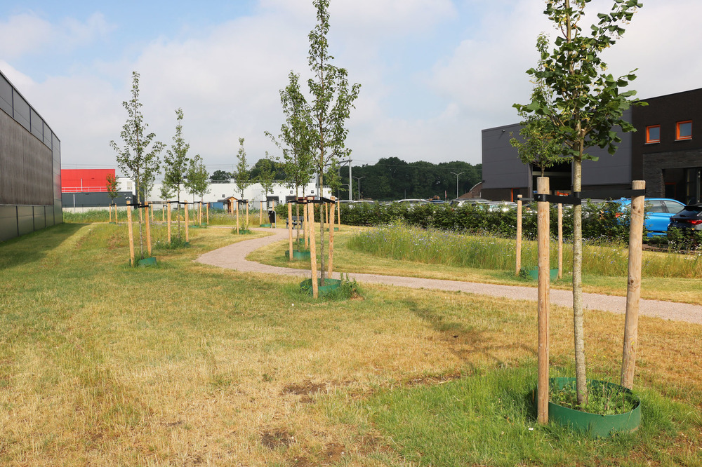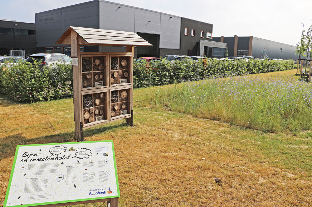 Tussen de inmiddels gevestigde bedrijven zijn groene oases ontwikkeld door het planten van bomen, een bijvriendelijk bloemenmengsel in te zaaien en een bollenmengsel in te planten. Overige delen zijn ingezaaid met een grasmengsel. Er is een bijenhotel - gesponsord door de Rabobank - geplaatst met een informatiepaneel en staan er bankjes en afvalbakken.