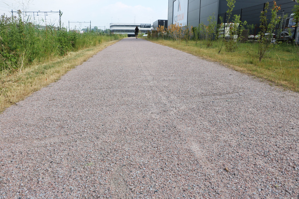 Achter de kavels ligt een sloot waarlangs een schouwpad is aangelegd met Schots granietgruis als halfverharding. Dit pad is via een groenstrook verbonden met de Industrieweg en aan de uiteinden verhard met graskeien voor een verbeterde toegang voor materieel.