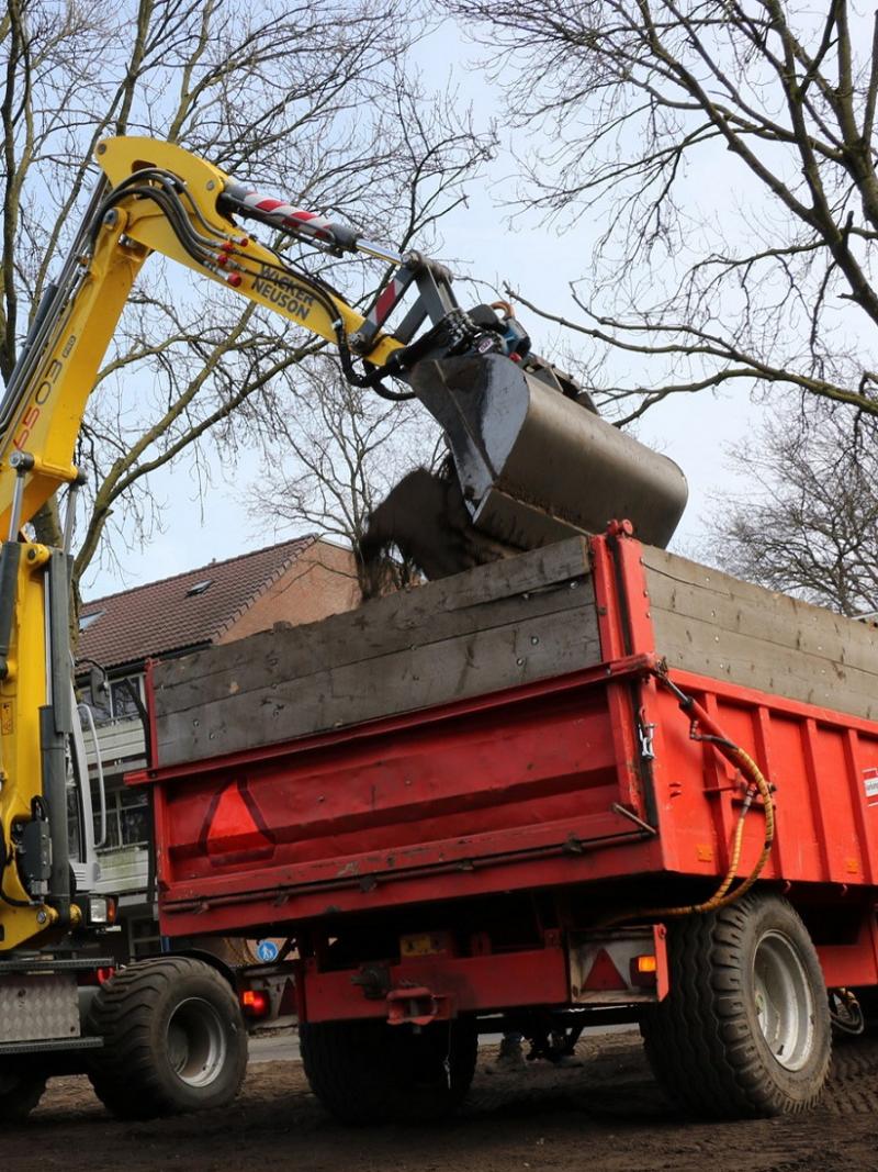Grondkar van 4 kuub met opzetschot voor het transport van zand, grind, grond, puin of bagger.