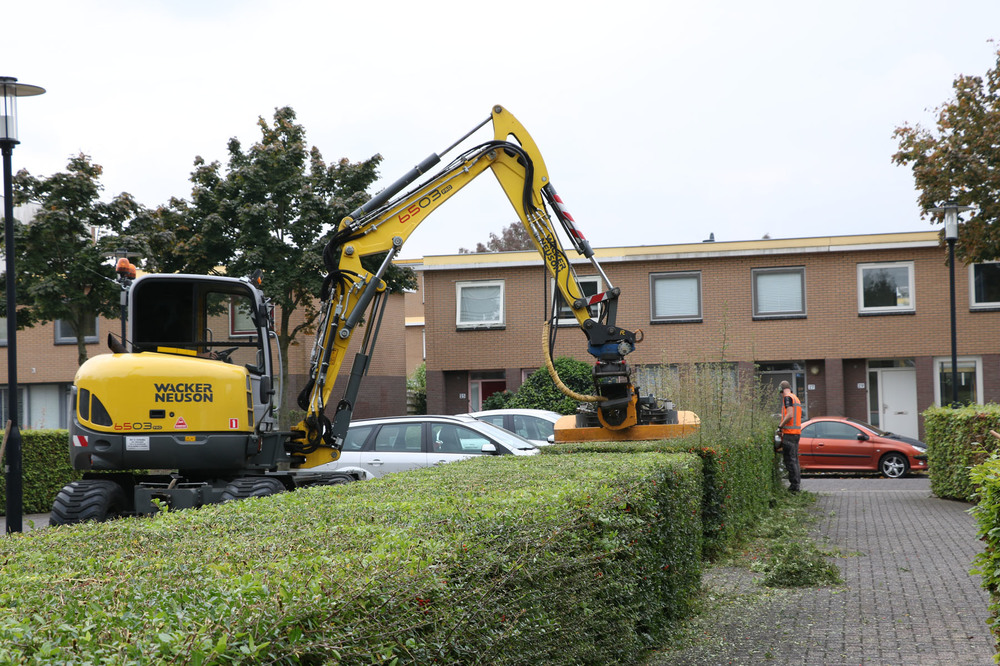 Een hydraulische heggenschaar of knipbalk geeft een mooi knipresultaat door de schaarwerking. Het toont iets minder strak in vergelijk met de mulch maar het resultaat is snel weer een mooi groene haag.