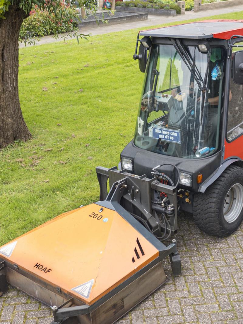 Het zijn compacte machines die met geringe breedtes vaak in nauwe doorgangen het werk kunnen bereiken. De vlakdruk van de machines is vaak laag zodat ze de stoep niet te hoog belasten.